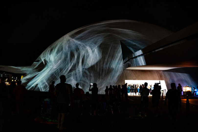 O trabalho é uma peça de arte audiovisual generativa que explora a relação ecológica única entre humanos e golfinhos no sul do Brasil, onde se pratica uma pesca colaborativa centenária. Os golfinhos reúnem cardumes e sinalizam sua localização em uma linguagem gestual compartilhada, permitindo que os pescadores lancem suas redes em locais precisos, beneficiando ambas as espécies.
